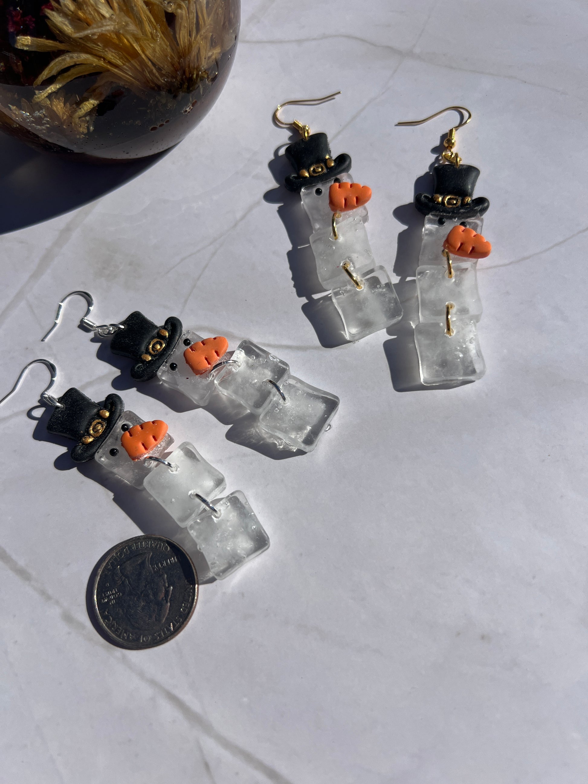 Add a frosty touch of whimsy to your winter look with these adorable handmade Ice Cube Snowman Earrings! Each pair is carefully crafted with crystal-clear resin “ice cubes” and detailed polymer clay accents, featuring a charming snowman complete with a carrot nose and classic top hat.